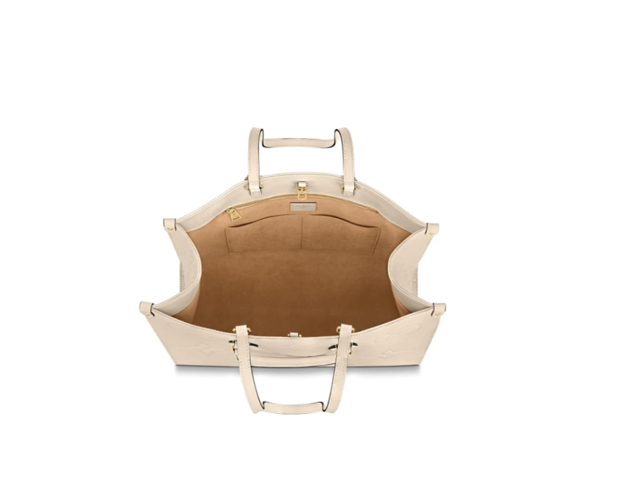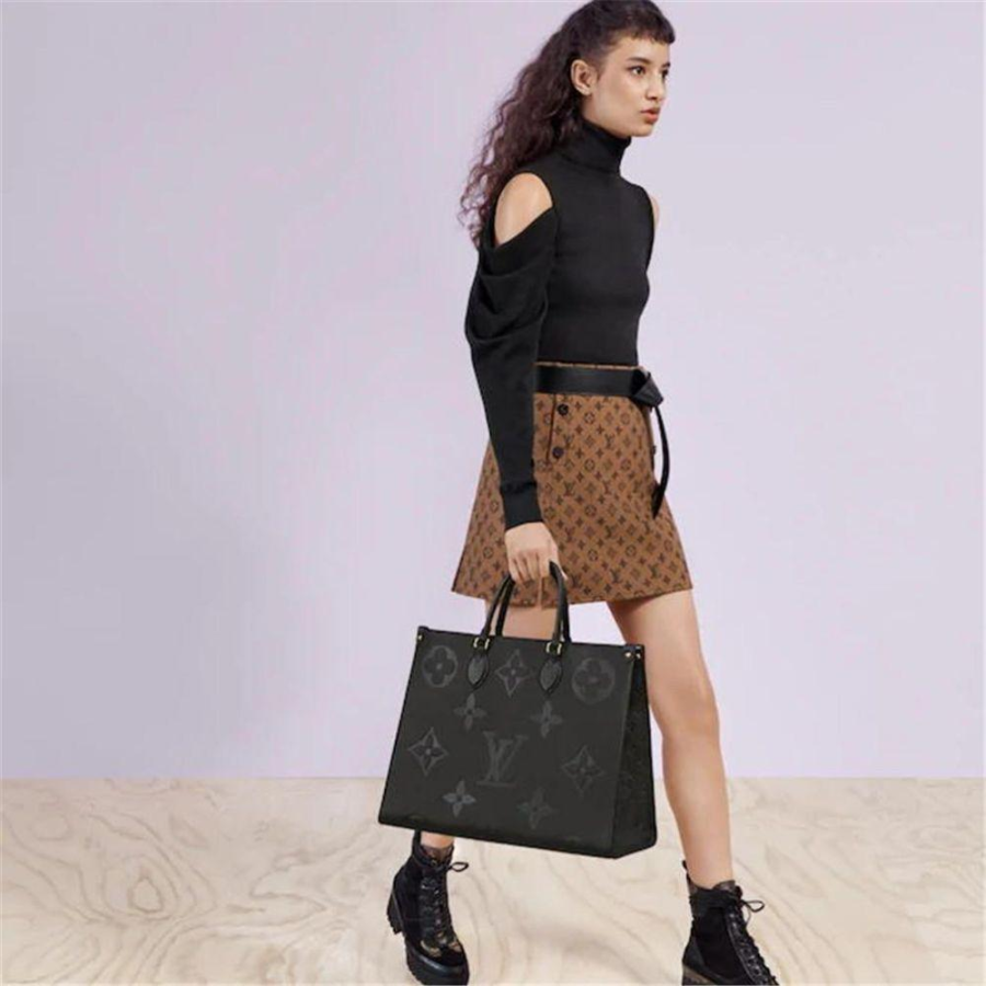 Onthegoハンドバッグは、モノグラムエンプレインテジャイアントエンボス加工のソフトな牛革をあしらったクラシックな四角いアウトラインで、オフィスの書類やラップトップを保管するのに十分なスペースがあります。 手に持ったり、肩のストラップを長めにして肩にかけたりすると、通勤とレジャーを切り替えることができます。